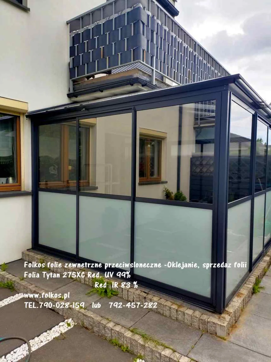 Folia przeciwsłoneczna w 100% zaciemniająca -występuje w 2-ch wersjach lustro-biały mat oraz lustro czarny mat -redukcja UV99%, redukcja IR 99%, redukcja rażenia słonecznego 100%