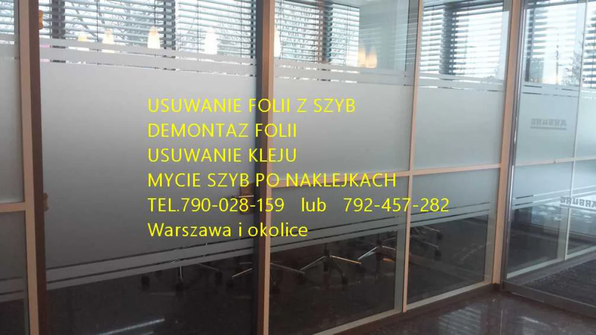 Usługa usuwania folii z szyb, demontaż folii, naklejek, reklamy ,mycie szyb, witryn Warszawa